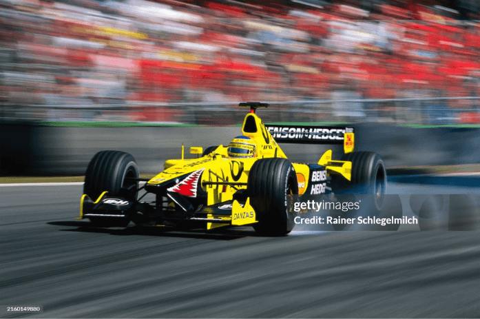 Jarno Trulli acelera com a Jordan EJ11 Honda em Interlagos, representando a transição da Fórmula 1 para uma nova fase tecnológica e competitiva. (Crédito: Rainer Schlegelmilch / Getty Images)