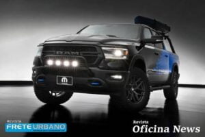 Placas de metal personalizadas com letras Mopar gravadas a laser protegem a área inferior da picape, na dianteira e na traseira. Na frente, o ângulo de entrada aumentou em 2,3°, para 32,5°. Nas laterais, os trilhos Mopar ajudam a proteger as soleiras.
