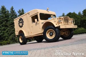 A capacidade off-road do Kaiser Jeep M725 é aprimorada pelos reforços no chassi original e pela substituição das molas semielípticas por um sistema helicoidal para uso pesado. Sob o capô está o motor Mopar 392 Crate HEMI® V8 ligado a um câmbio automático antigo, TorqueFlite 727. Essa combinação oferece 492 cv de potência e 644 Nm de torque.