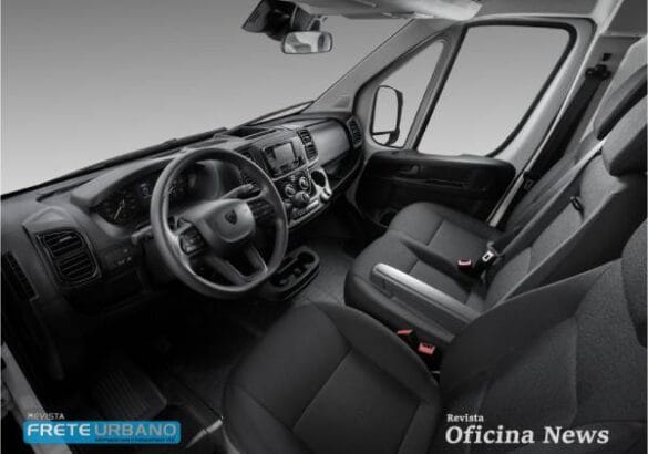 No interior, as mudanças incluem novo volante, painel redesenhado com acabamento preto brilhante, novo cluster com tela digital de 3,5” e, nas versões para passageiros, central multimídia de 7” com Android Auto e Apple CarPlay sem fio. A cabine também recebeu novos bancos com revestimento em crepe preto, luzes de LED no piso, saídas USB e tomadas de 12V, além de espaços de armazenamento com maior litragem (até 1,5L) para objetos de uso cotidiano.